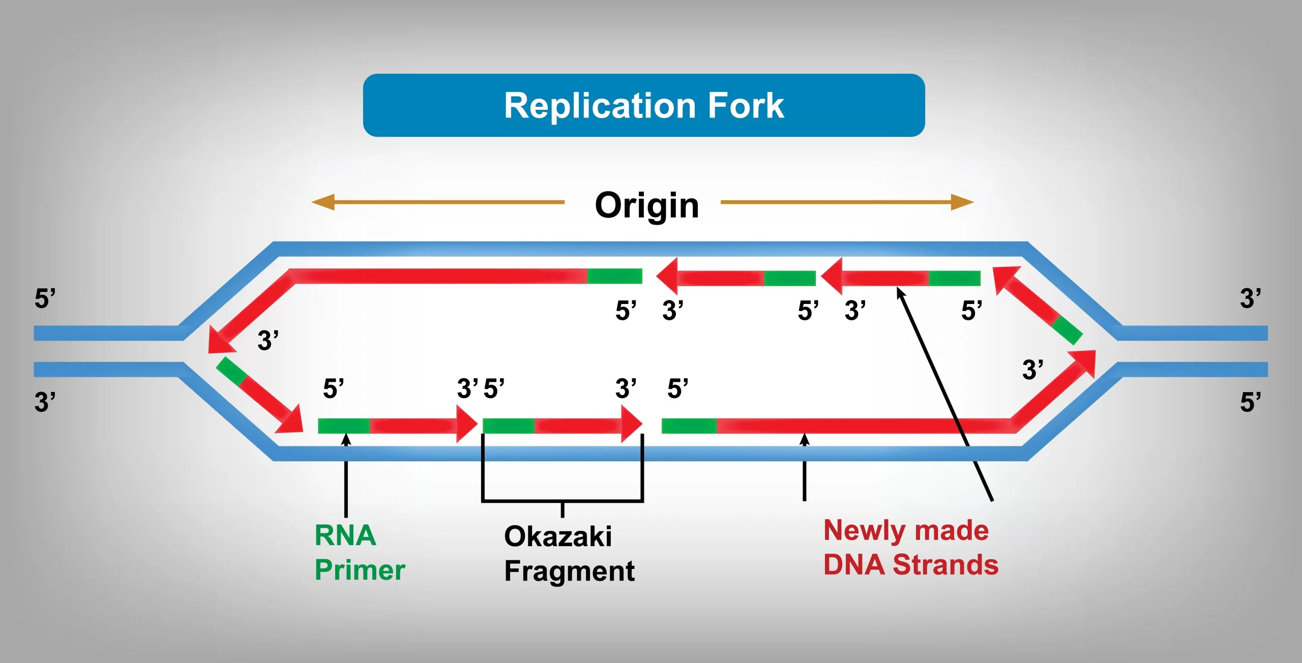 2. プライマーの合成:RNAプライマーゼ(プライマーゼ)という酵素が、複製開始点に短いRNAプライマーを合成します。このRNAプライマーは、DNAポリメラーゼが新しいDNA鎖の合成を開始するための開始点として機能します。