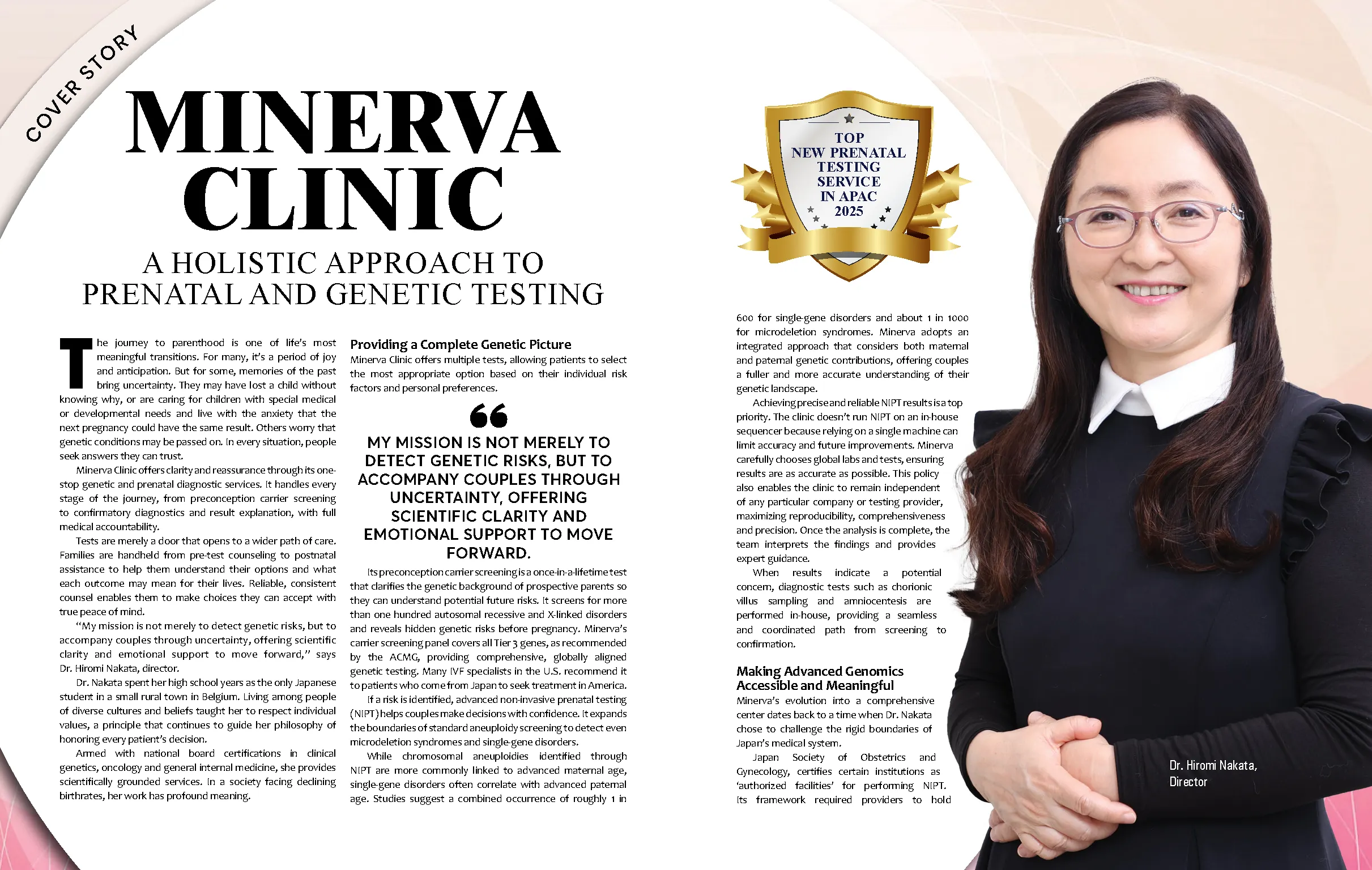 MINERVA CLINIC: A HOLISTIC APPROACH TO PRENATAL AND GENETIC TESTING Dr. Hiromi Nakata, DirectorCOVER STORY