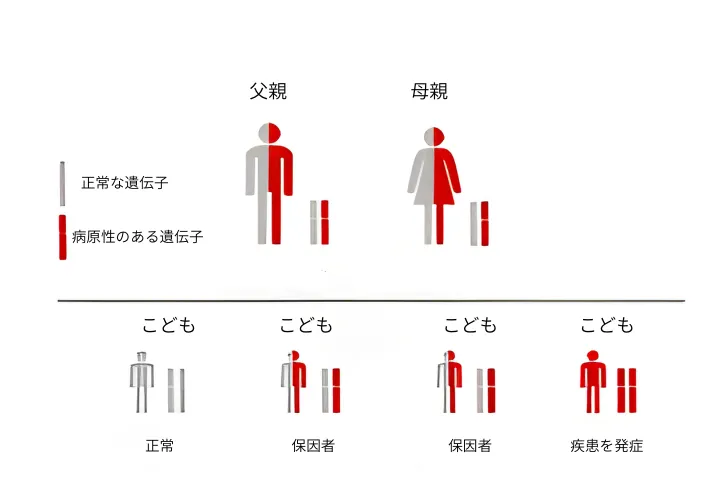 - ➤保因者:病的変異を1つ持っていても症状が出ないことが多い状態